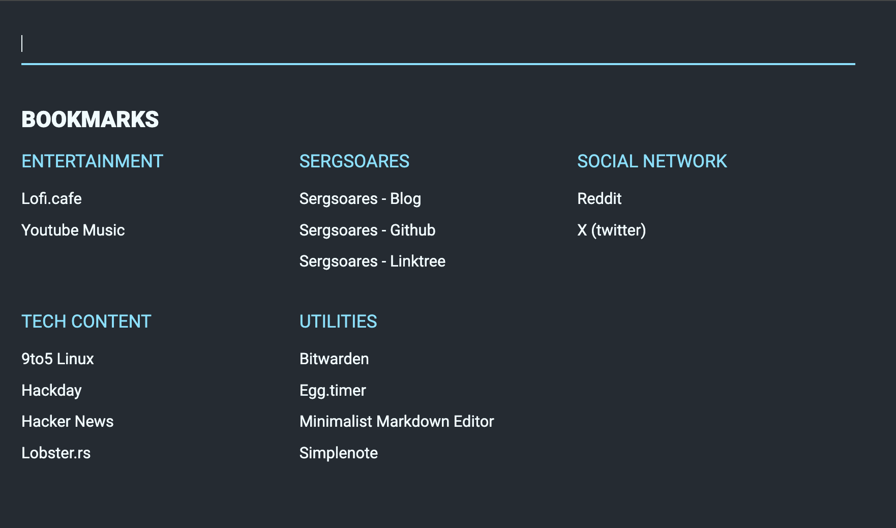 One useful application to have inside homelab is a startpage (like that intranet page with several links for all the applications used internally by a company) for add all quick links for the several systems that we manage and useful web apps like password manager, news websites and others.